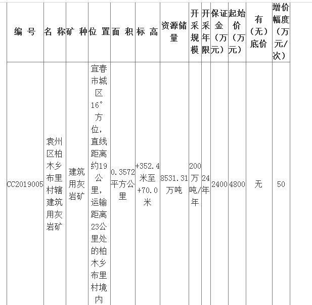 根據(jù)《江西省土地使用權和礦業(yè)權統(tǒng)一網(wǎng)上交易管理辦法》等有關規(guī)定,受宜春市自然資源局委托,宜春市土地礦產(chǎn)交易中心以網(wǎng)上拍賣方式出讓下列礦業(yè)權。
