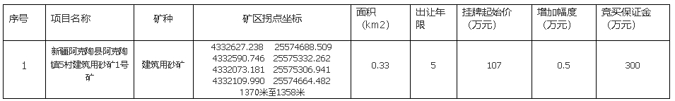 注:最終成交的采礦區(qū)范圍坐標(biāo)以與阿克陶縣國(guó)土資源局簽訂出讓合同中確定的采礦區(qū)范圍坐標(biāo)(西安1980坐標(biāo)系值)為準(zhǔn)。