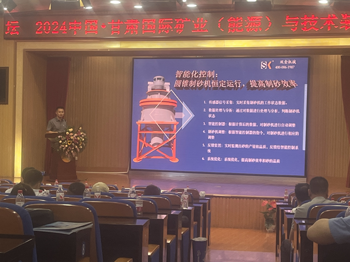 5月23日下午,在同期舉辦的行業(yè)高峰論壇上,浙江雙金機械營銷副總趙蘇駿發(fā)表《智能化技術在圓錐式制砂機中的應用》主題演講。趙總從“圓錐機究竟能不能用來制砂”這一問題作為切入口,分析圓錐制砂的主要困難、故障,詳細介紹雙金研發(fā)設計圓錐制砂機的技術突破歷程,特別是智能化控制系統(tǒng)的應用使圓錐機制砂更高效更穩(wěn)定。趙總還熱情邀請客戶朋友到雙金總部考察交流,洽談合作。