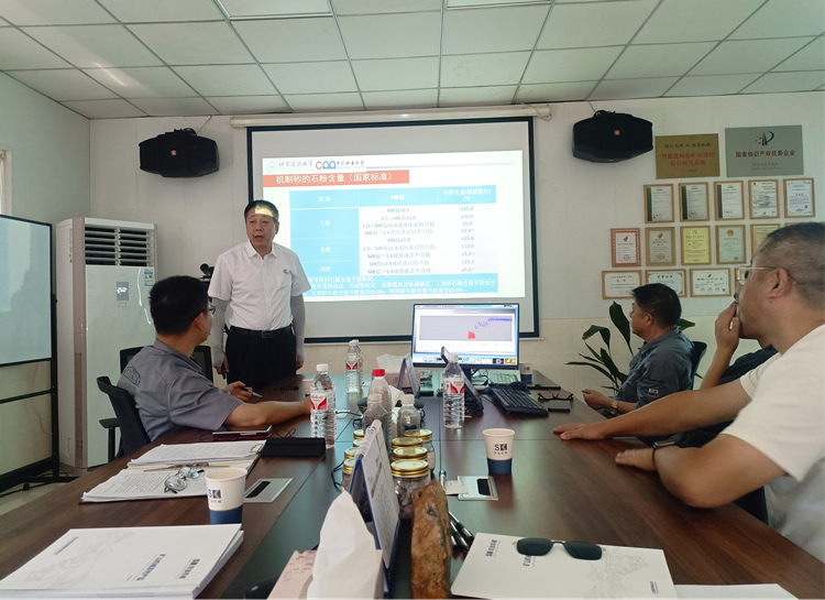 座談會(huì)上,雙金技術(shù)團(tuán)隊(duì)向宋教授詳細(xì)介紹雙金圓錐制砂機(jī)的性能優(yōu)勢及智能化控制系統(tǒng)研究與應(yīng)用成果,雙方就設(shè)備產(chǎn)量、能耗、成品砂細(xì)度模數(shù)、級(jí)配、粒型、亞甲藍(lán)值等方面進(jìn)行了細(xì)致探討。同時(shí),在公司領(lǐng)導(dǎo)陪同下,宋教授走進(jìn)公司實(shí)驗(yàn)基地零距離了解雙金圓錐制砂機(jī)的現(xiàn)場運(yùn)行情況,并對(duì)其智能化控制系統(tǒng)、制砂成品粒形等進(jìn)行深入交流。