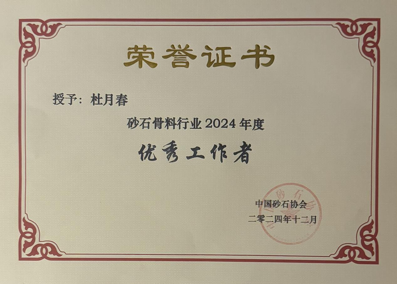公司副總杜月春被評為“砂石骨料行業(yè)優(yōu)秀工作者”