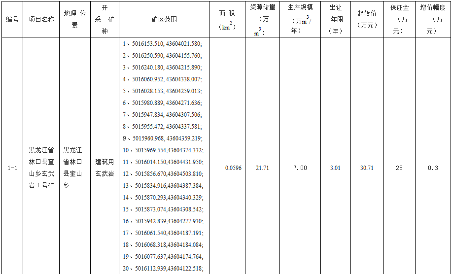 采礦有風險,投資需謹慎。礦產(chǎn)資源開采有不可預測的風險,本次采礦權(quán)出讓范圍的地質(zhì)資料與實際情況可能有一定的差異,出讓方提供的地質(zhì)資料僅供競買人參考,出讓方不作任何承諾。競買人須充分評估投資風險,一旦競得并成為采礦權(quán)人,不得以地質(zhì)資料中的儲量、開采條件及其它不可抗力等為由向國土資源部門提出退款、索賠等要求,其開采風險和競買風險均由競買人承擔。
