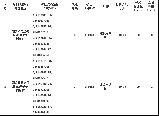 注:最終成交的采礦權(quán)范圍拐點(diǎn)坐標(biāo)以與額敏縣國(guó)土資源局簽訂出讓合同中確定的采礦權(quán)范圍拐點(diǎn)坐標(biāo)為準(zhǔn)。
