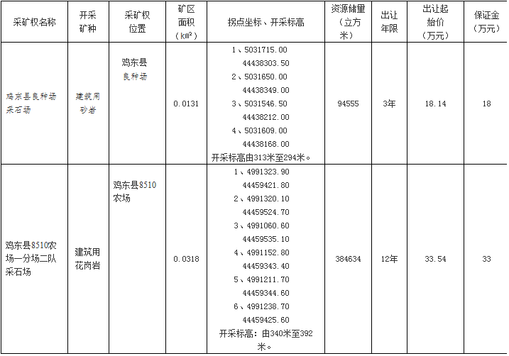 根據(jù)《中華人民共和國(guó)礦產(chǎn)資源法》、《礦產(chǎn)資源開(kāi)采登記管理辦法》、《探礦權(quán)采礦權(quán)招標(biāo)拍賣掛牌管理辦法(試行)》及有關(guān)法律法規(guī)的規(guī)定,受雞東縣國(guó)土資源局委托,雞西市公共資源交易中心將公開(kāi)掛牌出讓二宗采礦權(quán),現(xiàn)就有關(guān)事項(xiàng)公告如下: