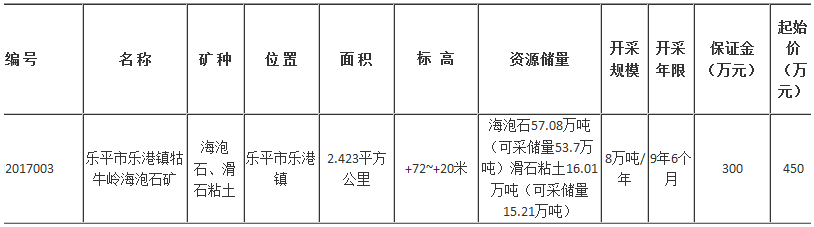 根據(jù)《江西省土地使用權和礦業(yè)權統(tǒng)一網上交易管理辦法》等有關規(guī)定,受景德鎮(zhèn)市國土資源局委托,景德鎮(zhèn)市國土資源交易中心以網上掛牌方式出讓下列礦業(yè)權。