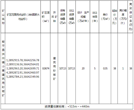 根據(jù)《礦產(chǎn)資源開采登記管理辦法》(國務院241號令)、《中華人民共和國礦產(chǎn)資源法》、國土資源部《探礦權采礦權招標拍賣掛牌管理辦法(試行)》、《省人民政府辦公廳關于全面推行礦業(yè)權招拍掛出讓制度的通知(黔府辦發(fā)〔2014〕33號)》的有關規(guī)定,經(jīng) 黎平縣 人民政府批準, 黎平縣 自然資源局委托黔東南州公共資源交易中心網(wǎng)上公開掛牌出讓以下采礦權?,F(xiàn)將有關事項公告如下: