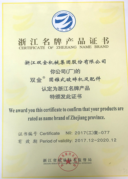 據(jù)悉,名牌產(chǎn)品的認(rèn)定對公司規(guī)模、注冊商標(biāo)、質(zhì)量、技術(shù)先進(jìn)性、市場占有率、知名度等都有很高要求。雙金圓錐式破碎機(jī)于2014年就通過嚴(yán)格的審核被認(rèn)定為省名牌產(chǎn)品,說明雙金破碎機(jī)設(shè)備已具備較強(qiáng)的市場競爭力,并得到了政府及市場的認(rèn)可和肯定。