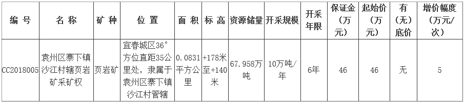 根據(jù)《江西省土地使用權(quán)和礦業(yè)權(quán)統(tǒng)一網(wǎng)上交易管理辦法》等有關(guān)規(guī)定,受宜春市國土資源局委托,宜春市土地礦產(chǎn)交易中心以網(wǎng)上拍賣方式出讓下列礦業(yè)權(quán)。